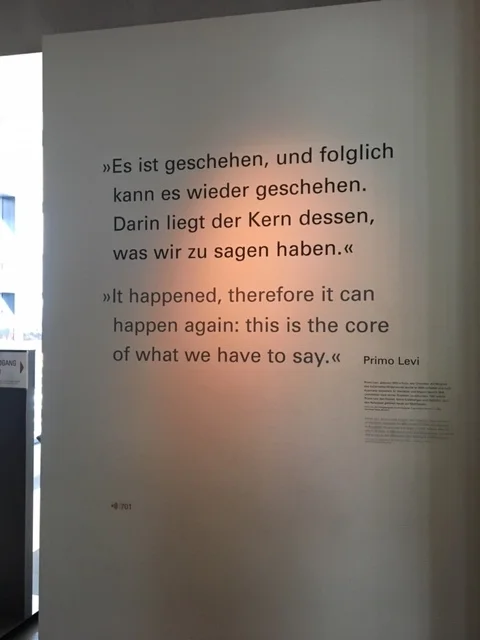 The above-ground memorial consists of more than 2,700 massive, rectangular, coffin-like concrete steles. The underground exhibit is simple and somber, with pictures of the victims and reproductions of their writings (letters, etc.). Though millions died, very few photographs survived.